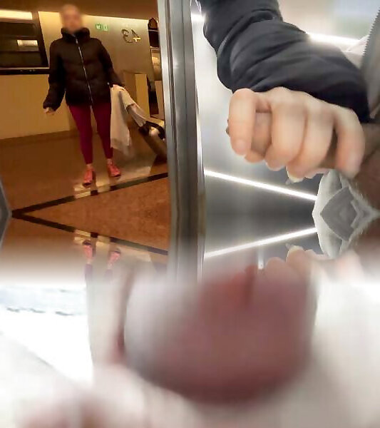 An unknown sporty girl from the hotel gives me a blowjob in the public elevator and helps me finish cumming