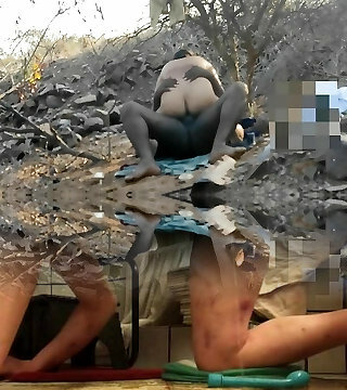 Painful creamy ass-fuck and gaping fur covered asshole with black dildo. Fucking neighbor girl with big ass and stretching her ass