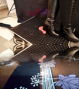Pipe Squeeze & Bootjob in Sexy Dark-hued Lace Knee Boots with TamyStarly - CBT, Ballbusting, Cock Crush, Trample