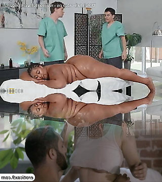 गर्म गलफुल्ला आबनूस मालिश करनेवाली एक मालिश सत्र के दौरान उसके ग्राहक के बीडब्ल्यूसी का आनंद ले समाप्त होता है