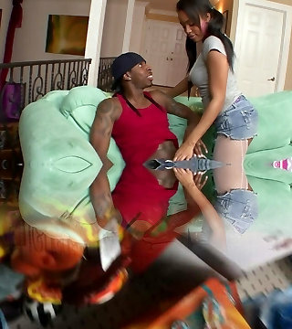 Sexy dark-hued girl McKenzie Sweet gives nice blowjobs to a man before taking dick inside her pussy