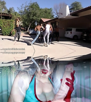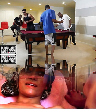Ebony slut Skyler Nicole fucks a crowd of mischievous dudes