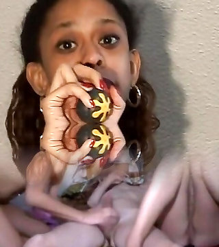 Perveted Gal Ebony shows off her nice phat ass and delicious pulsing pussy while ejaculating multiples