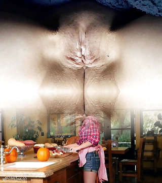 मेरे मालिक & # 039; पत्नी रसोई घर में मदद के लिए मुझसे पूछता है और मुझे उसे भारी पारदर्शी चूत से पता चलता है