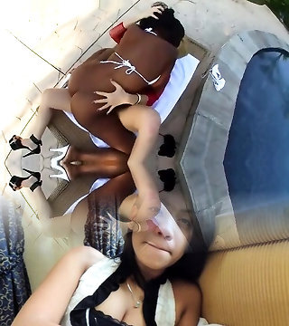 Delightful, ebony chick is licking her white partners ass while touching his jizz-shotgun at the same time