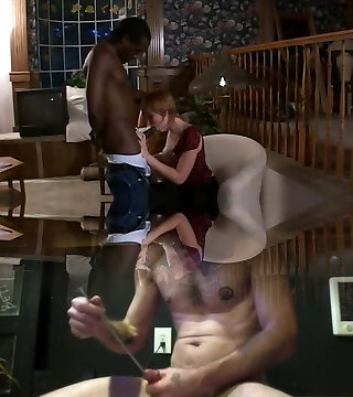 Curious blonde slut wife princess with a white big bootie cheating on husband. Hairy pussy licking hard sex, Black cock, pus