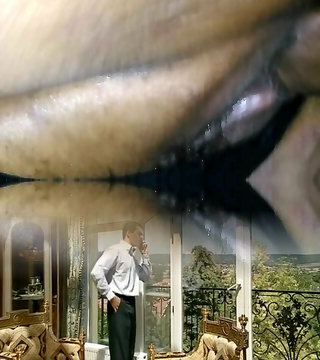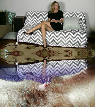 Blonde woman in erotic, black stockings, Lucindais stretching up and rubbing her wetting wet pussy