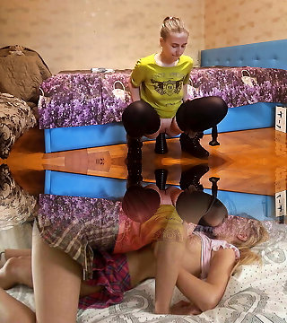 I discovered my stepsister wanking with a huge dildo and I help her cum with a big drizzle with my cock and her toy