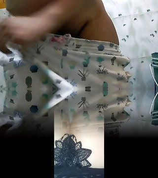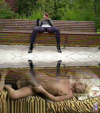 In stockings without panties sexy platinum-blonde Milf is cleaning room for Christmas. Pussy, pussy, ass, donk, natural tits Milf