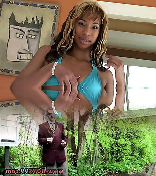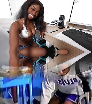Exceptionally beautiful ebony porn model Jamie Sullivan rides good-sized white man sausage on top