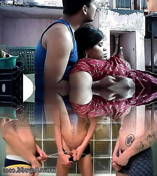 Tamil MILF Step-mother Stuck Under Sofa with white saree & black blouse, when she cleaning under bed then sonnie fuck her