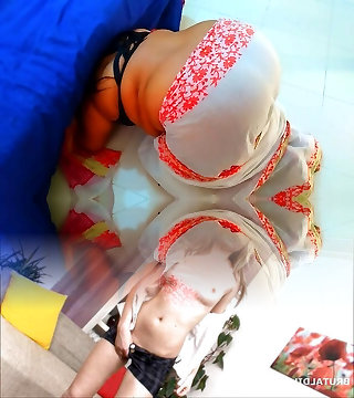 Tamil MILF Step-mother Stuck Under Sofa with white saree & black blouse, when she cleaning under bed then sonnie fuck her