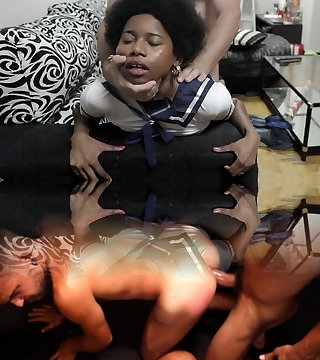 Chocolate colored cheerleader takes Big Black Cock in her muffin