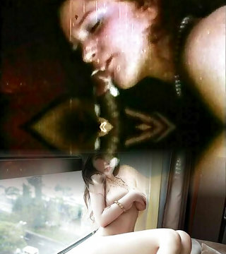 Bronze skin sexy brunette babe in black fishnet stocking tastes good